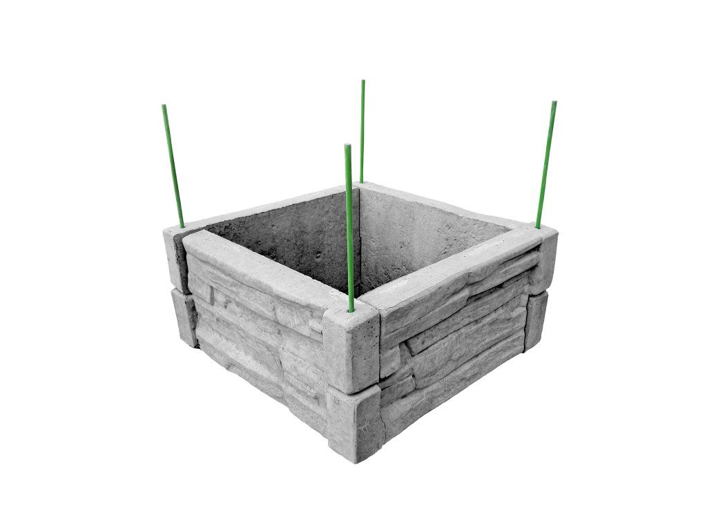 Vyvýšený záhon betonový 50x50 cm, výška 25 cm, vzor štípaný kámen, přírodní šedá