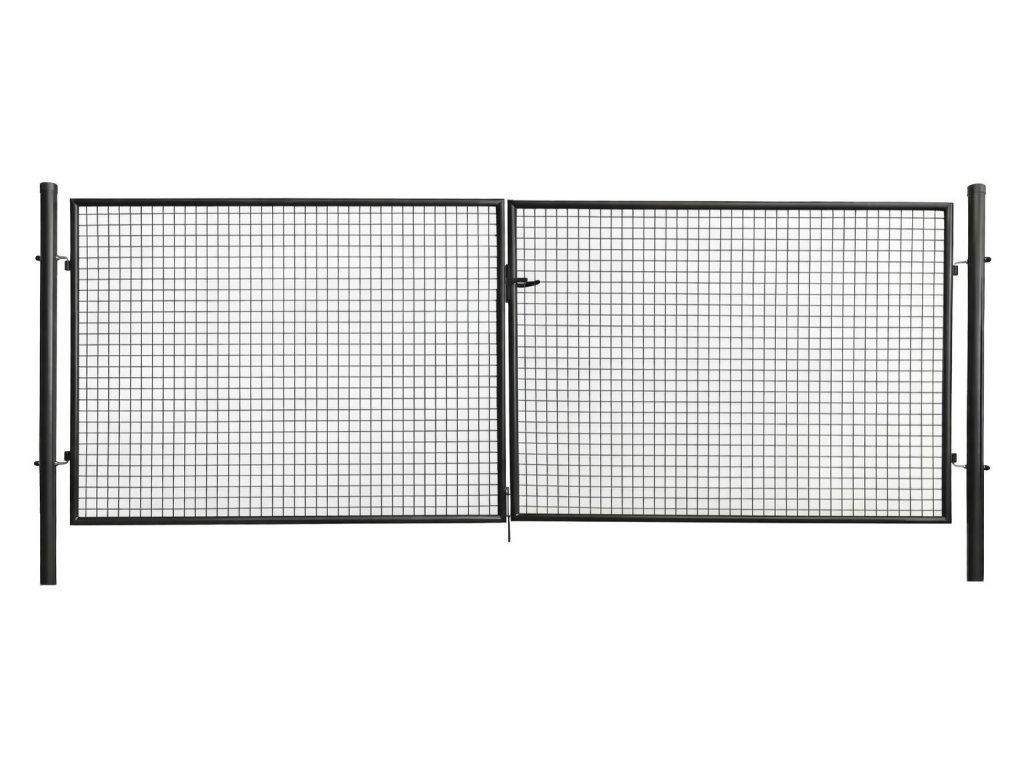 Velikost brány 400 x 200 cm, výplň ze svařované sítě s okem 50 x 50 mm, tloušťka drátu 4 mm, povrchová úprava pozinkování a poplastování, barva antracitově šedá.